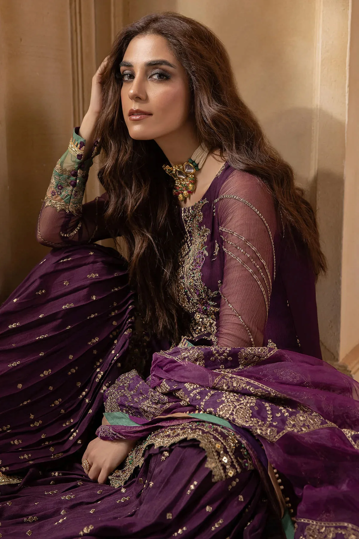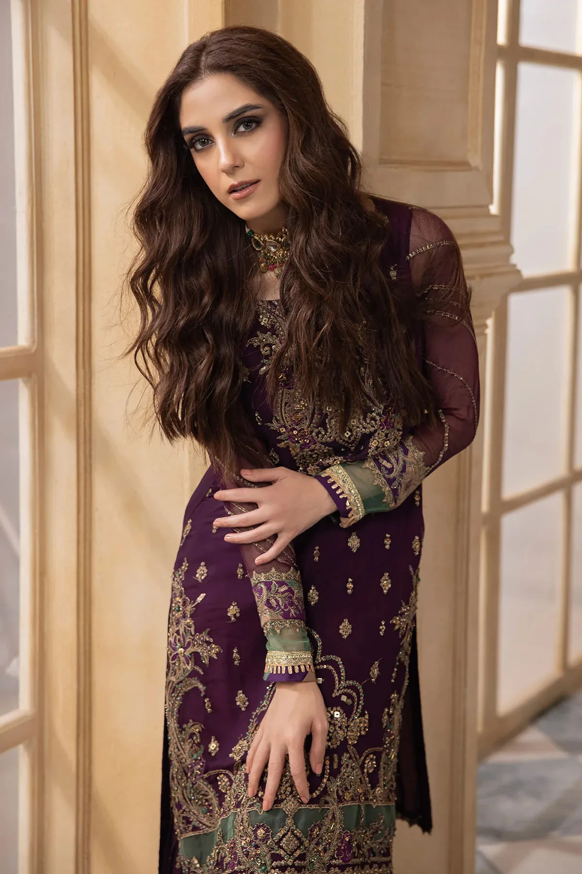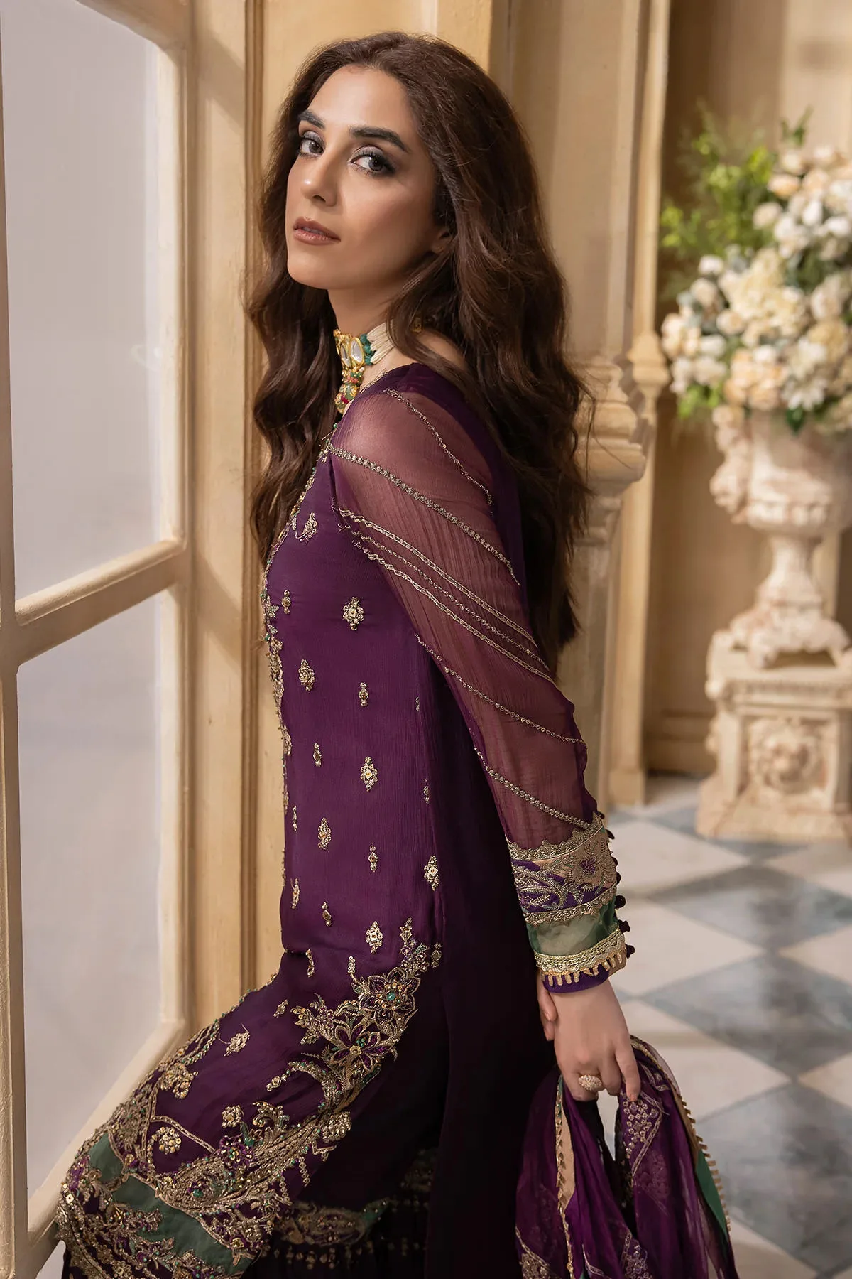 - Sleeves (26 inches): Embroidered dyed chiffon