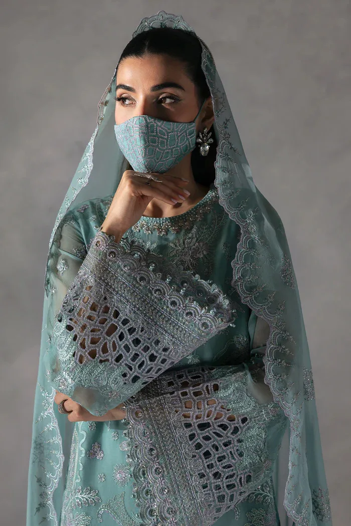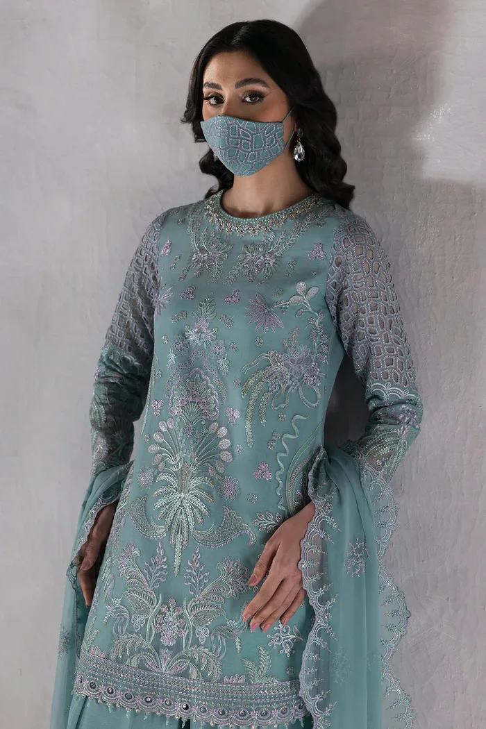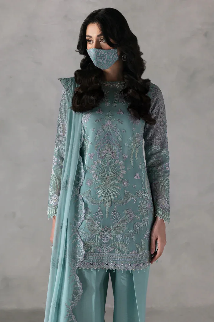 Aqua Blue Stone Embellished Chiffon Embroidered Suit | LA-905