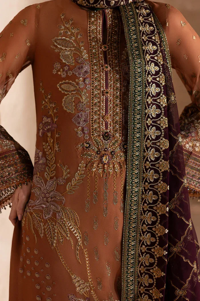Burnt Copper & Plum Contrast Chiffon Embroidered Suit | LA-904