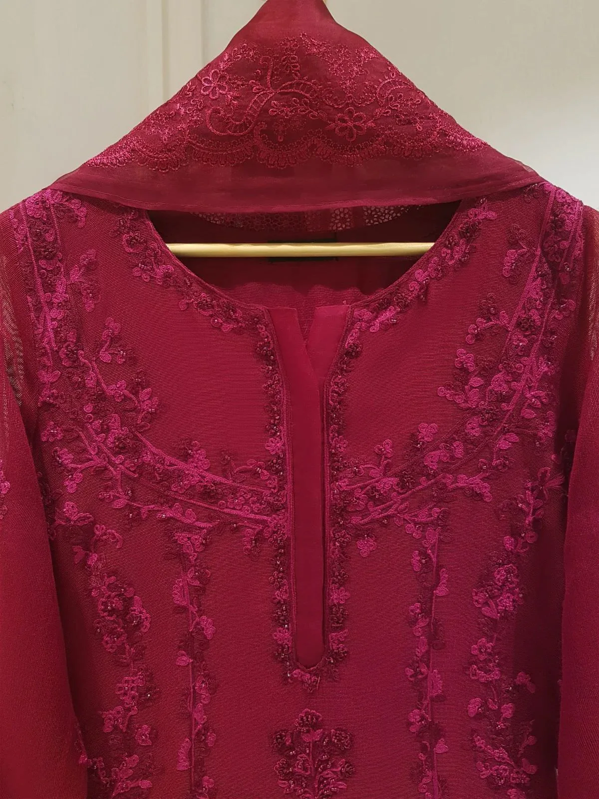 Pure Embroidered Cotton Net Shirt With Organza Dupatta S106816