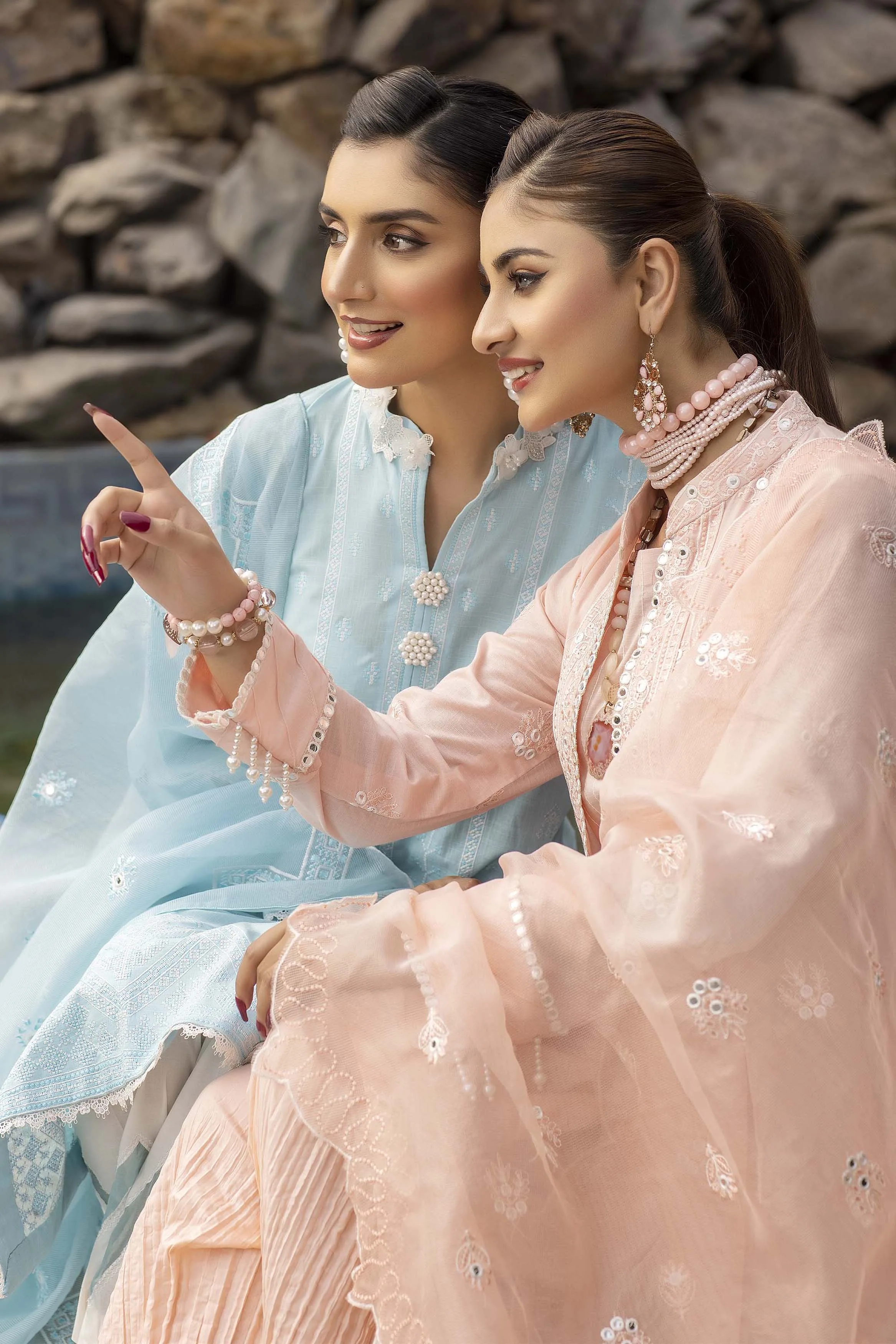 Rib-Lawn Fabric with Mirror Embroidered Qos-e-Qaza (Spring Edition’23) RJ08