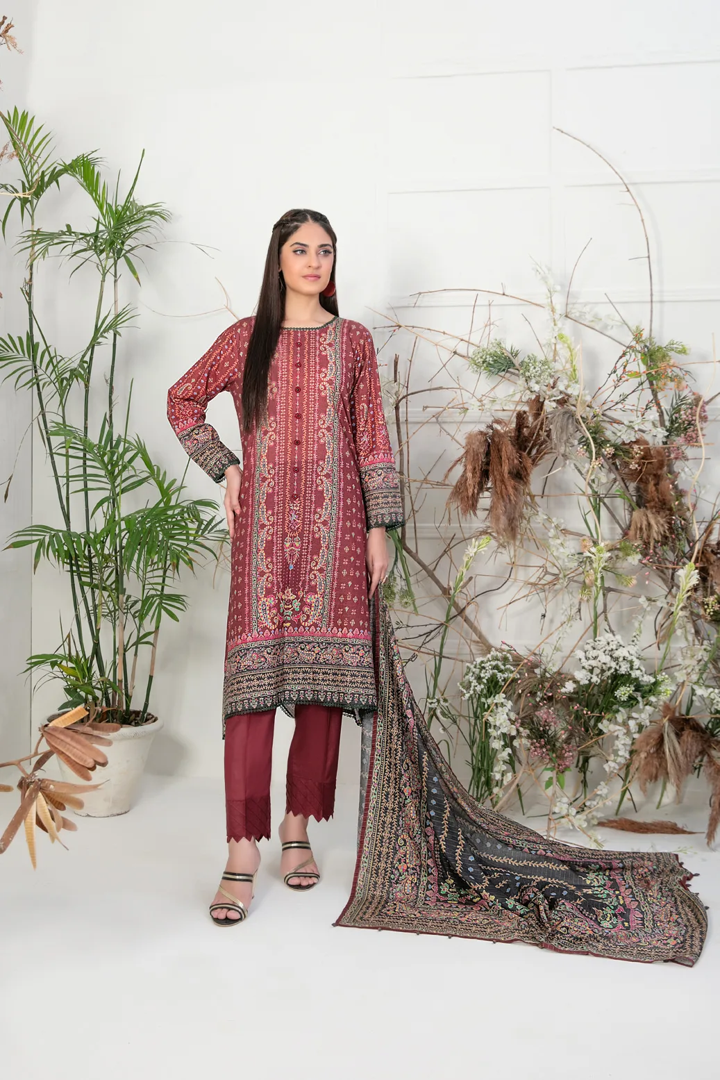 3 Piece Un-Stitched Collection By Tawakkal Fabrics, Attractive & Elegant Lawn Collection comes with: