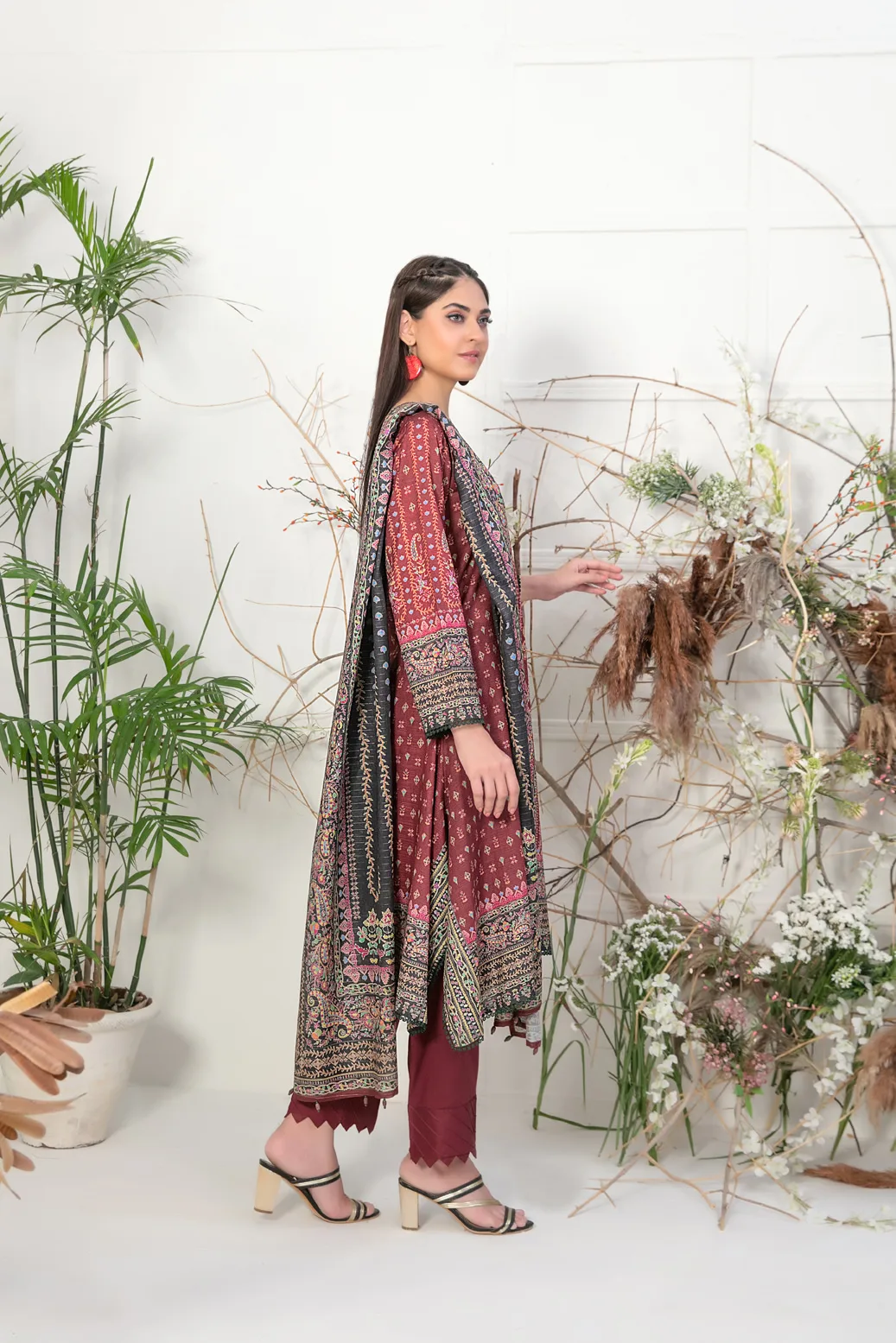 – Unstitched Digital Printed Slub Lawn Shirt Designs with Swarovski Embellishments