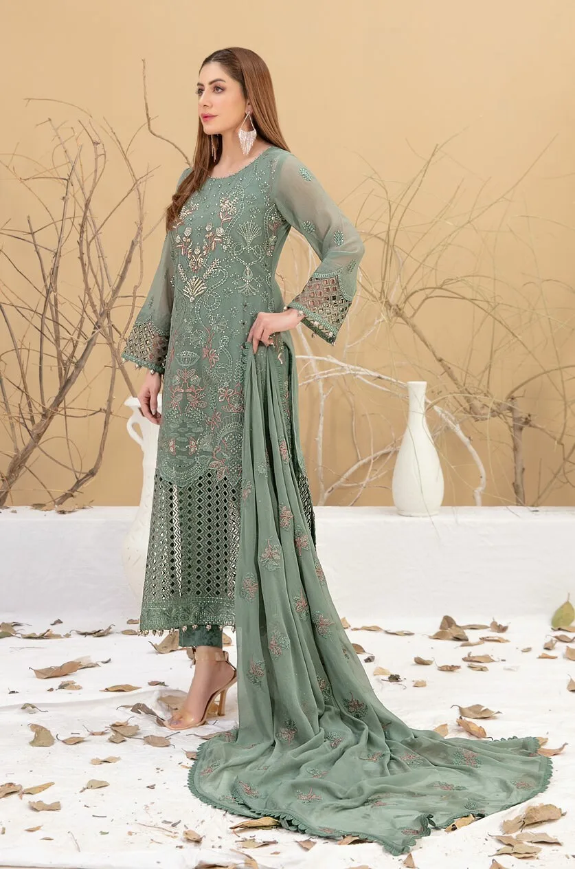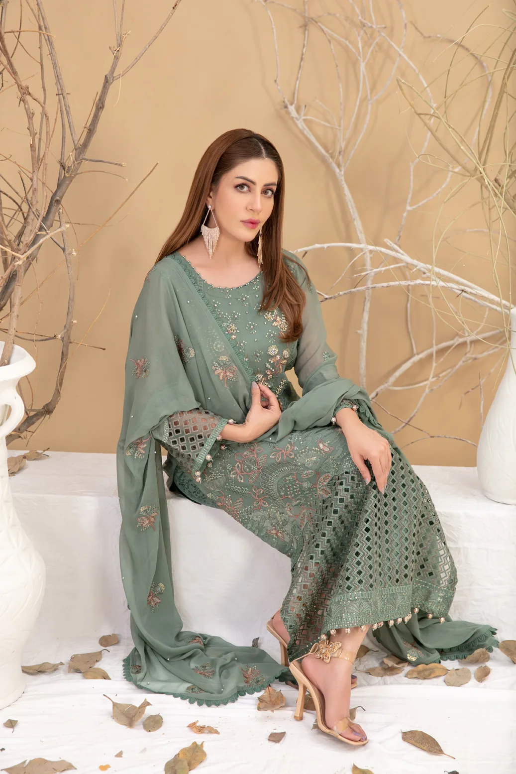 3 Piece Semi-Stitched Collection By Tawakkal Fabrics, Attractive & Elegant Slub Chiffon Collection comes with: